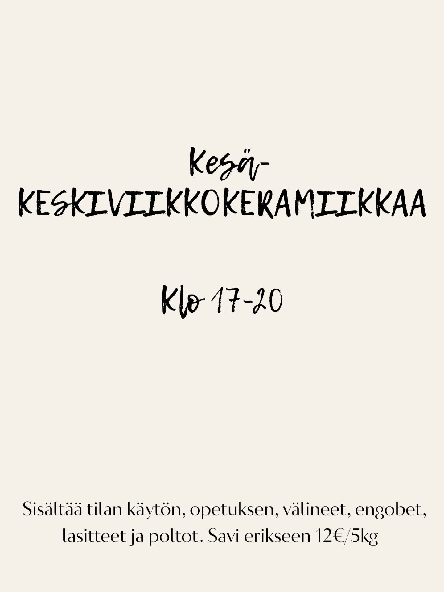 Kesän pitkä kurssi keramiikkaa alkaa keskiviikkona 13.5! mukaan!