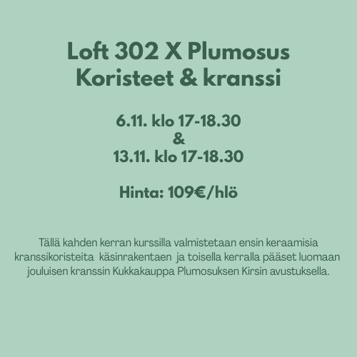 Kaikki kurssit soveltuvat jokaiselle, oletpa sitten pidempään keramiikkaa harrastanut tai vasta keramiikkapolkusi alussa. Voit ilmoittautua kursseille sivun ylälaidasta "ilmoittaudu viestillä tästä" tai instagramissa @loft302_hml.